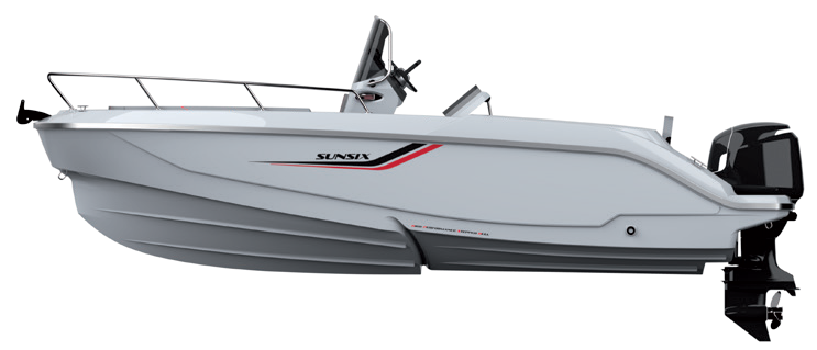 Bijeli trup s obojenim stranicama (crna ili plava) – Bijela paluba – Čelična pramčana propovjedaonica – Br.4 bitve – Pramčani valjak – Električna kaljužna pumpa – 12V električni sustav – Električna ploča sa 6 prekidača – 12V utičnica za punjenje mobitela – Kompas – Sirena – Navigacijska svjetla – Nadzorna ploča – Vjetrobransko staklo – Upravljač – Pramčani ušic – br. 2 krmena ušica - Ljestve od nehrđajućeg čelika s 4 stepenice - Pilotsko i kopilotsko sjedalo - Spremnik za vodu od 30 l - Autoklav - Tuš na krmenoj platformi - Slavina ispod kormilarsko sjedalo - Sustav goriva sa spremnikom od 90 l u ELTEX-u - Luksuzne presvlake s dijamantnim šavovima usklađenim s bojom bedema – Komplet za sunčanje na krmi i pramcu – Stol u kokpitu – Hidraulički sustav upravljanja do 115 KS – Bočni pretinci za pohranu – Veliki stražnji ormarić za odlaganje sigurnosne opreme 2013/53/CE – Priručnik za vlasnika